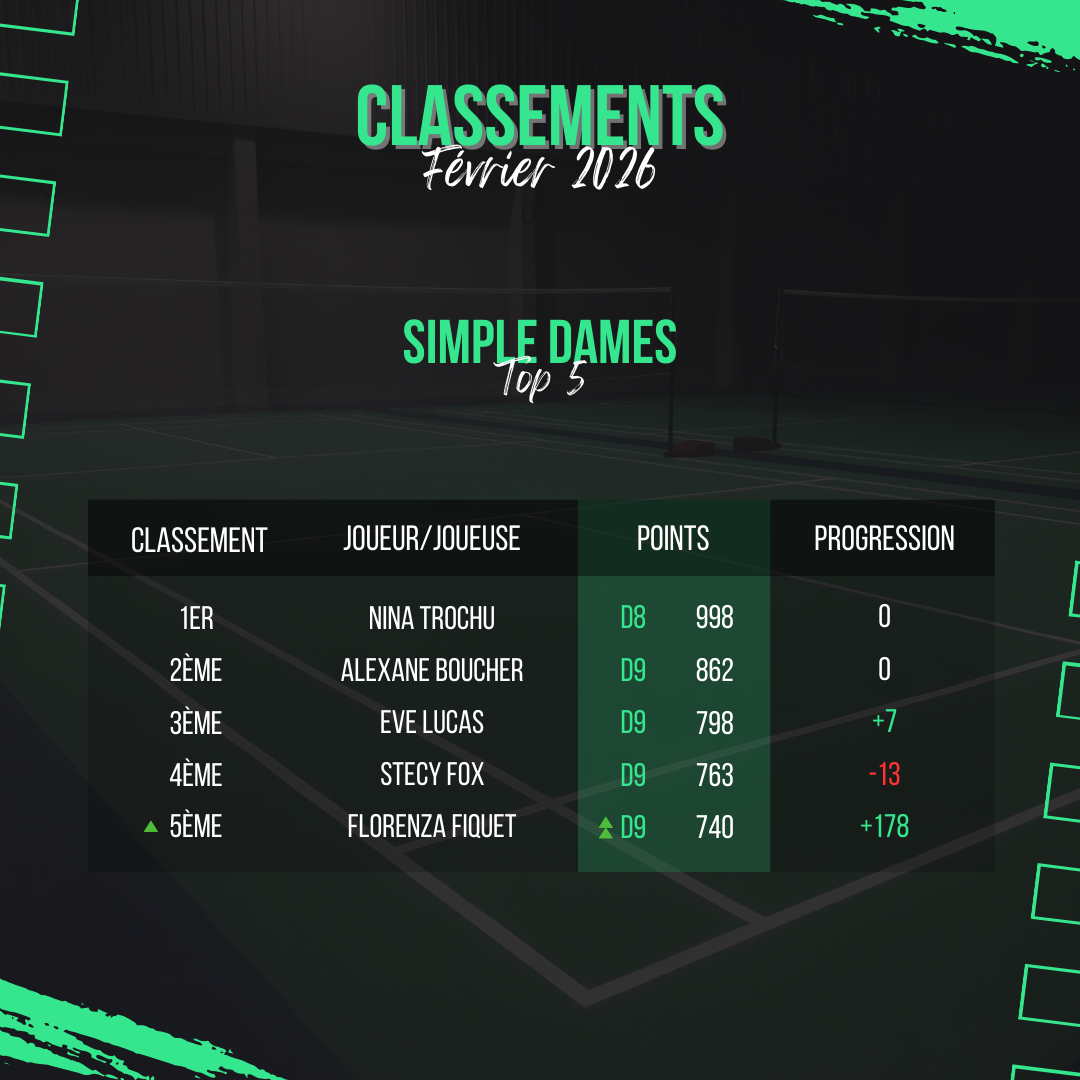 Bravo à nos joueurs pour ces progressions, que l’on va continuer de suivre avec attention, notamment dans cette période riche en tournois ! 👀