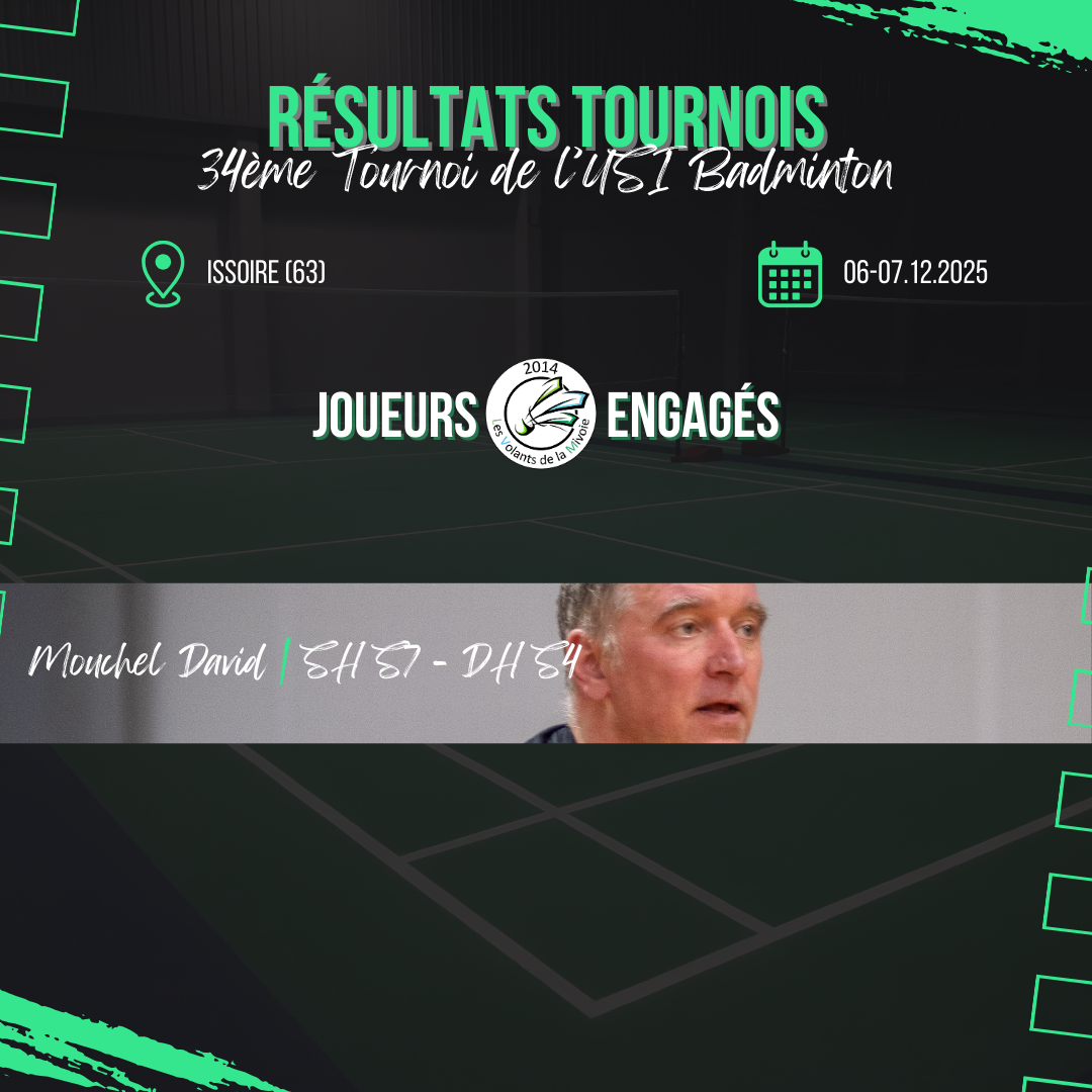 David était dans le Puy-de-Dôme le week-end dernier, plus précisément à Issoire pour y disputer la 34ème édition du tournoi de l’USI Badminton ! 🏸
