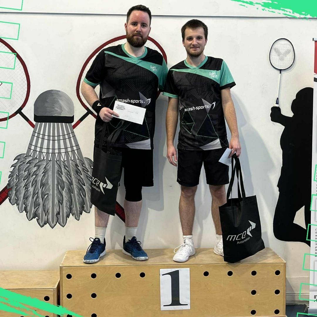 Ce sont les hommes qui ont lancé les hostilités ! Erwann et Quentin commencent sur les chapeaux de roue avec 2 victoires avant de s’incliner à deux reprises, contre les deux finalistes de la série, un bilan plus qu’honorable ! De leur côté, Alex et Thomas se qualifient en demi-finale de la série 2, y écartent les têtes de série 1, et battent en finale les têtes de série 2 qui les avaient battus en poule, au terme d’un match maîtrisé de bout en bout ! Une belle récompense pour nos deux joueurs après deux podiums obtenus plus tôt dans la saison ! 🥇