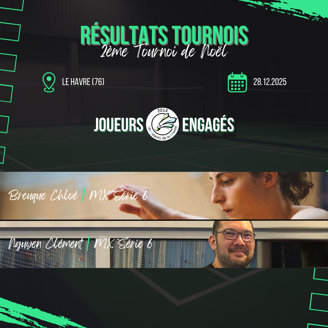 Pas de repos pour les braves, même en période de fêtes ! Chloé et Clément étaient au Havre pour y disputer en double mixte la deuxième édition du tournoi de Noël organisé par le HAC Badminton ! 🎄